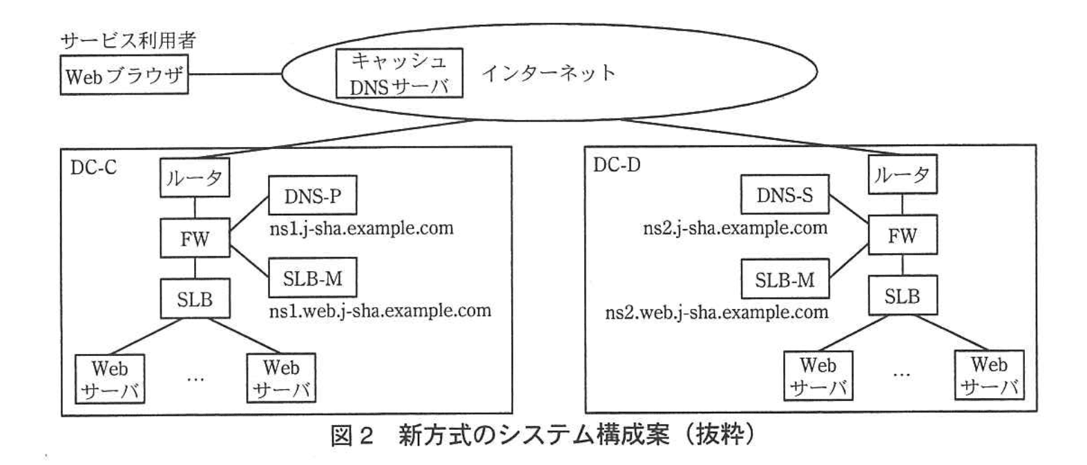 ・「共有した情報から、DC-C 又は DC-D のどちらに Webアクセスを振り分けるかを判断して、DNS への名前解決の要求に対し、最適な応答を返す。」