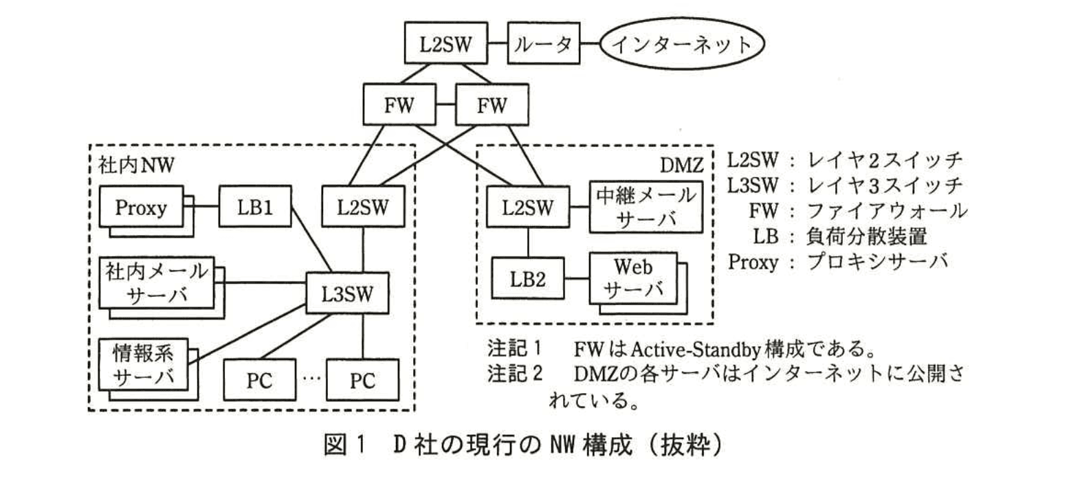 D社の現行のネットワーク(以下、NWという)構成を図1に示す。