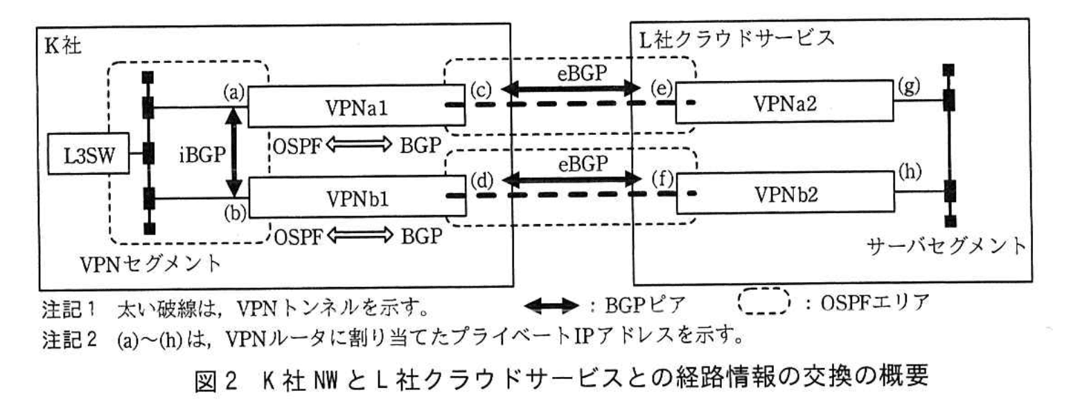 Oさんが考えた、K社NWとL社クラウドサービスとの経路情報の交換の概要を図2に示す。