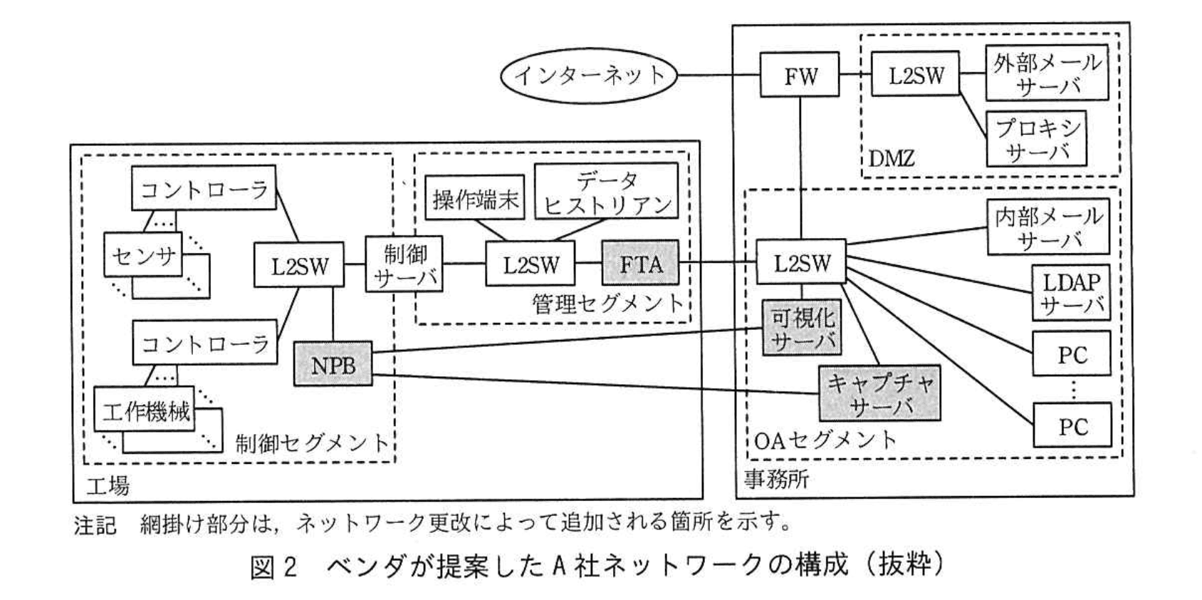 Bさんがベンダから提案を受けた、A社ネットワークの構成を、図2に示す。