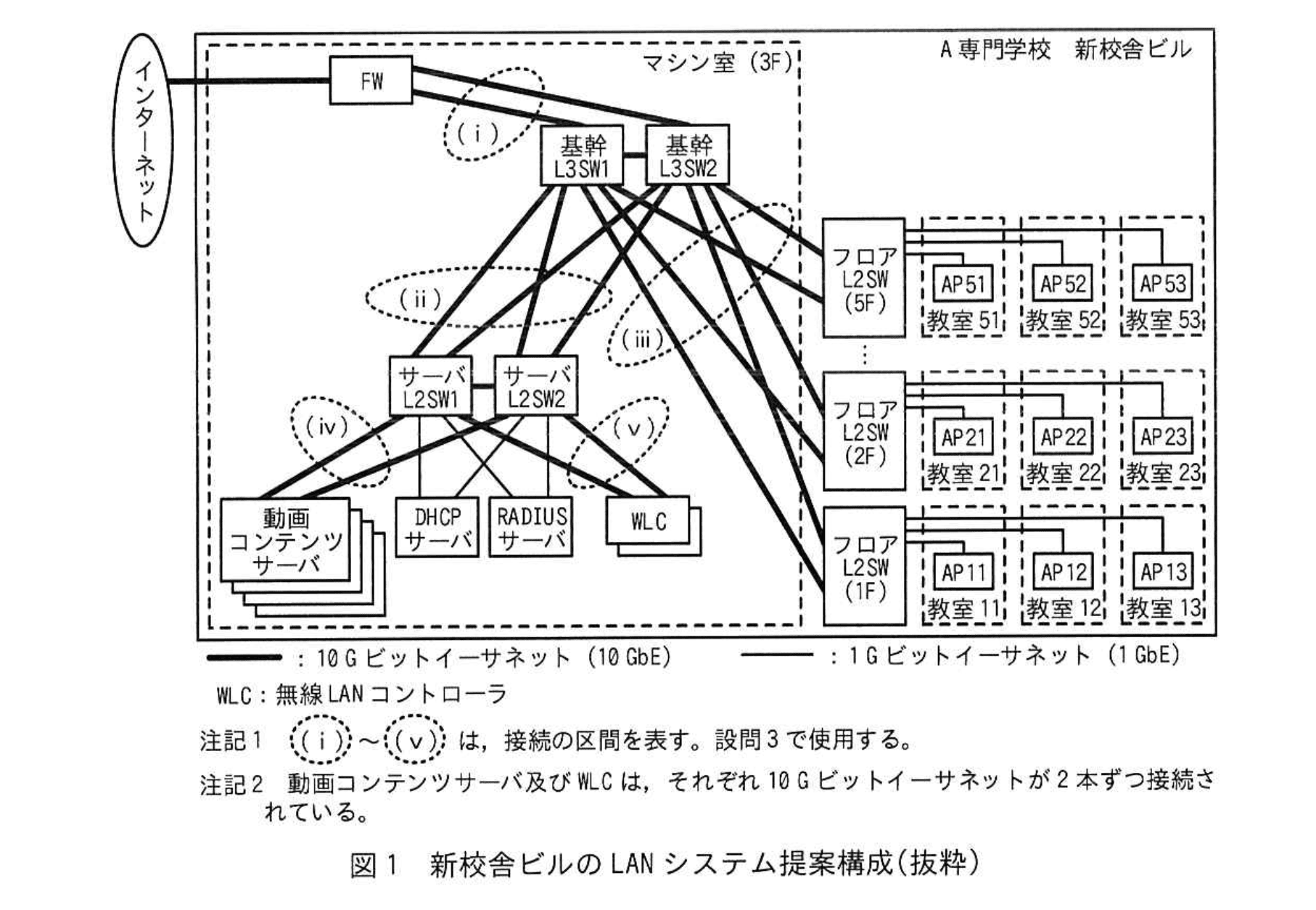 A専門学校では新校舎ビルを建設中で、その新校舎ビルのLANシステムのRFPが公示された。主な要件は次のとおりである。