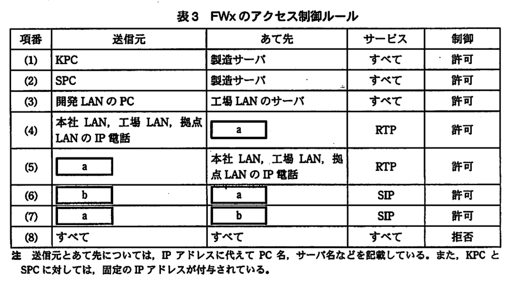 A: 工場 LAN 内や本社・拠点 LAN との通話は FWx を介さず IP-VPN 上で直接届くため、表3には記載しません。