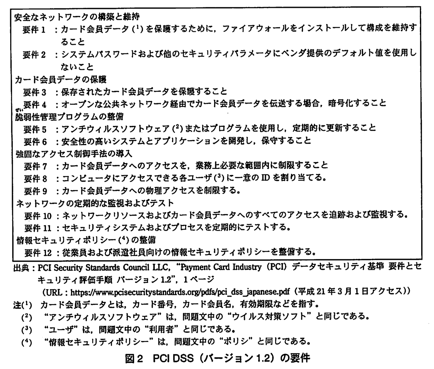 Fさんは図2に示すPCI DSS(バージョン1.2)の要件をG部長に提示した。