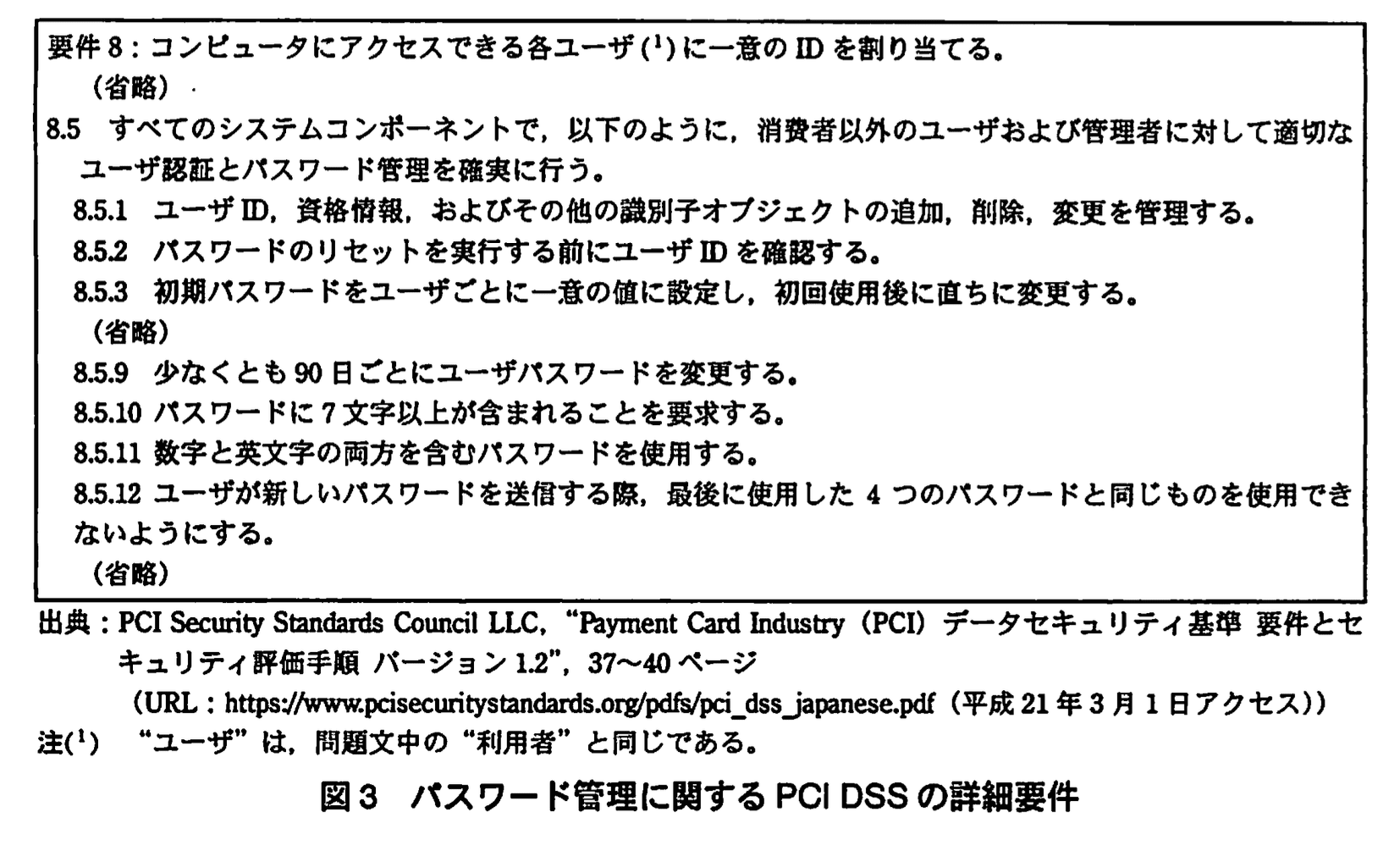 Fさん:そうです。例えば、観察事項として指摘されたパスワード管理に関しては、要件8の中に、図3に示すような詳細要件が定められています。