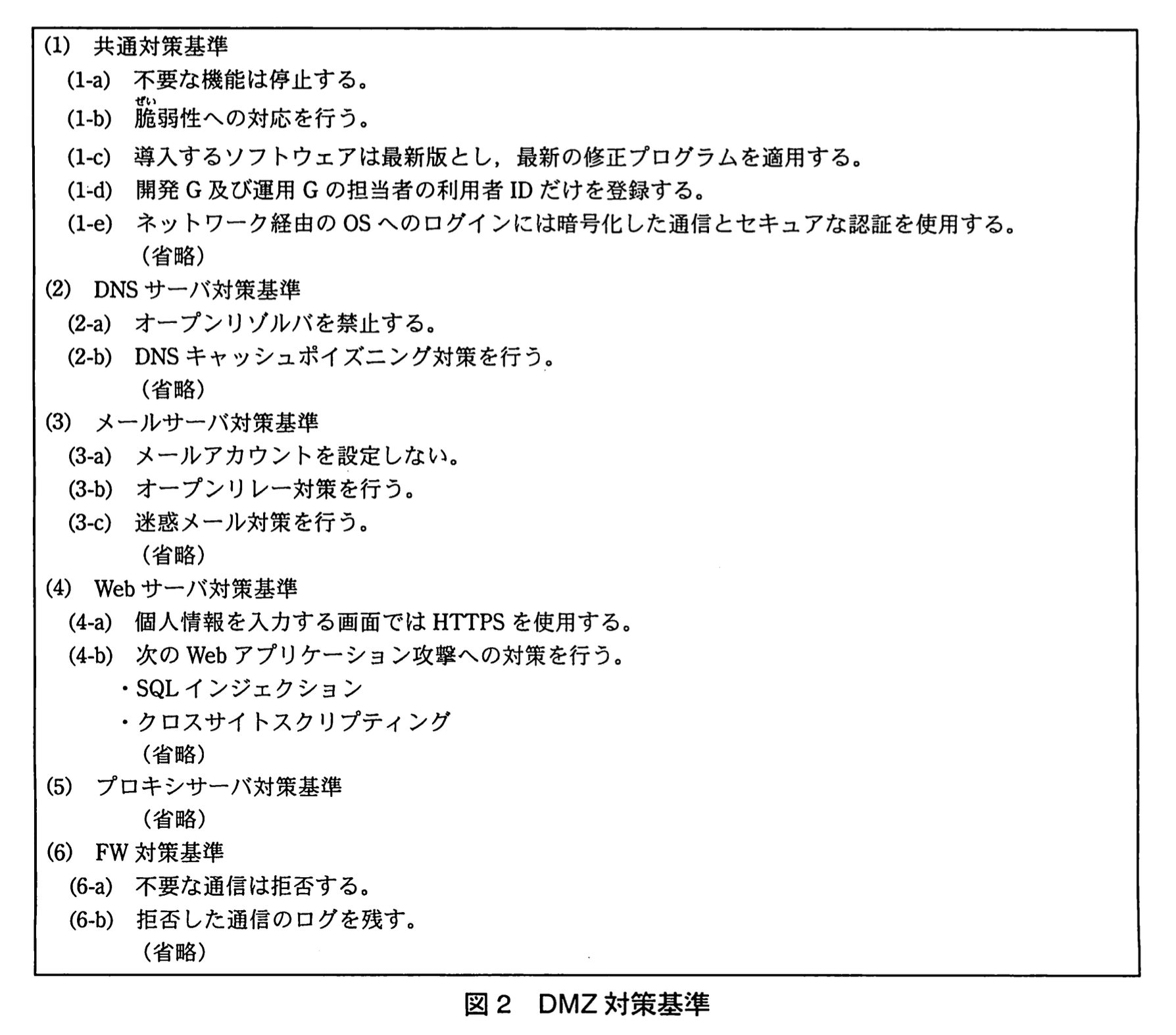 (1) 最新の情報セキュリティ対策を盛り込み、DMZ に設置されるサーバの情報セキュリティ対策基準(以下、DMZ 対策基準という)を作成