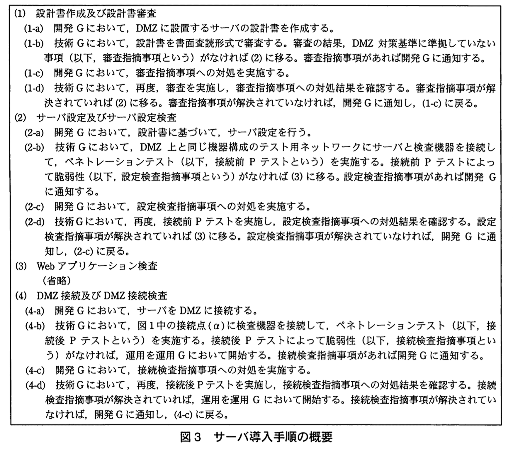 (2) 情報セキュリティ品質向上のために、DMZ に設置されるサーバの導入手順(以下、サーバ導入手順という)を作成