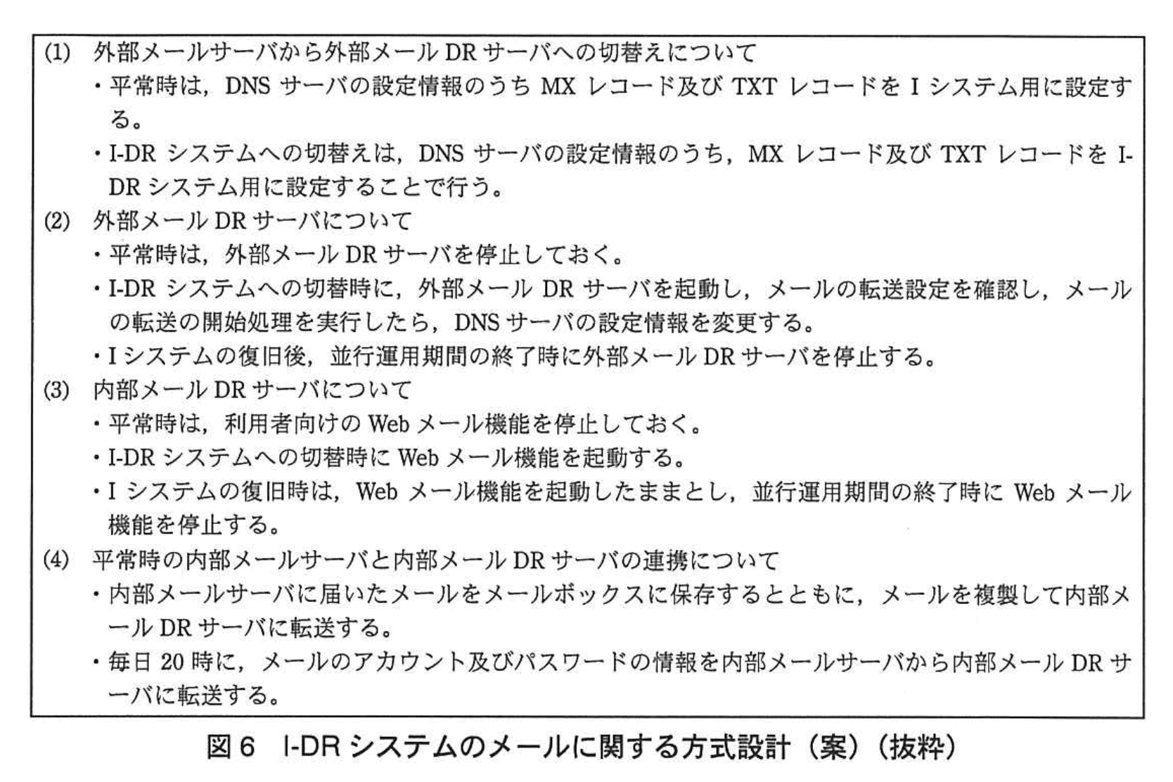 Fさんが、I-DR システムの方式設計を行うことになった。まず、図6のI-DR システムのメールに関する方式設計(案)ができたので検討チームでレビューを行った。