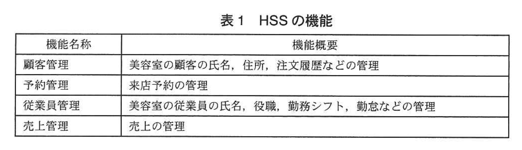 U社は、従業員数100名のソフトウェア開発会社で、以前は受託開発を主に行っていたが、数年前から業務パッケージの開発も手がけるようになり、業績を伸ばしている。今回、新たに美容室向けの自社製品として、表1の機能を備えた美容室管理システム(以下、HSSという)を開発することが決まり、M専務が開発責任者になった。M専務は、美容室がHSSを運用することは難しいと考え、U社がHSSを運用し、インターネット経由で美容室へサービスを提供する、いわゆるSaaS型の商品とすることにした。また、美容室間の情報の独立性を高めるために、美容室ごとに仮想サーバを用意し、その上でHSSを運用することにした。