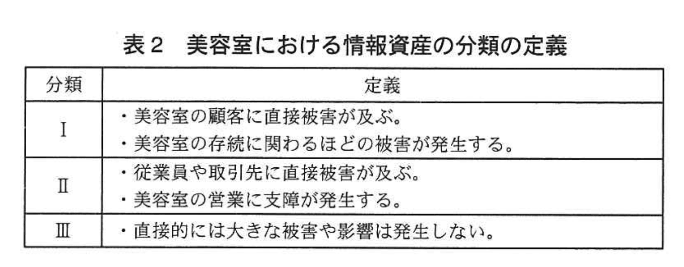 (1) 表2のように、美容室における情報資産の分類を定義した。