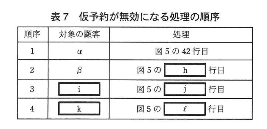 - 予約枠の同時選択で発生した不具合は、表7の「顧客αの仮予約がデータベースに反映されない」や表8の「顧客βの個人情報が顧客αの画面4に表示」など、読込後に別スレッドが同一行を変更したことが原因です。