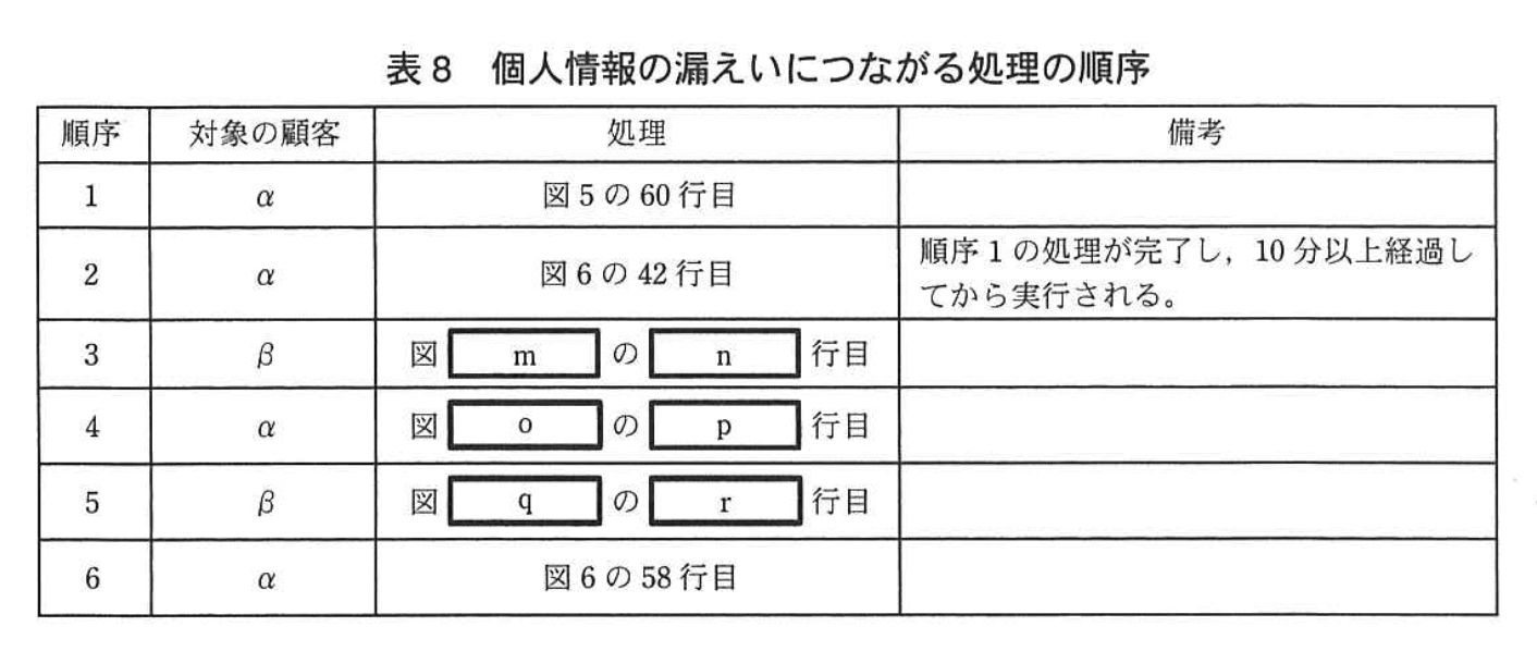 さらに、①空き状態であった予約枠を、顧客αが画面2で選択して画面3に進むのと並行して、同一の予約枠を顧客βが画面2で選択した場合、表8に示す順序で各処理が完了すると、顧客βの個人情報が顧客αの画面4に表示されてしまうことが確認できた。