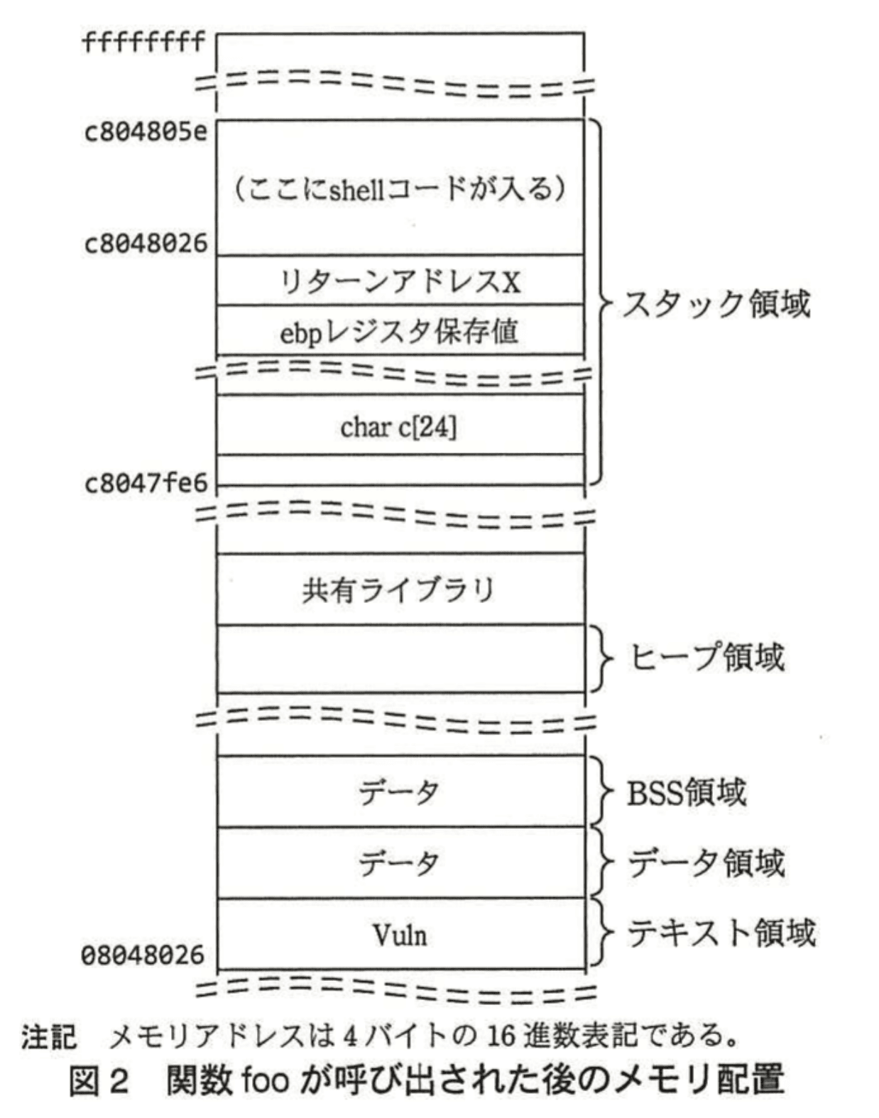 関連キーワード: スタックバッファオーバフロー、データ実行防止、シェルコード、メモリセグメント、多層防御