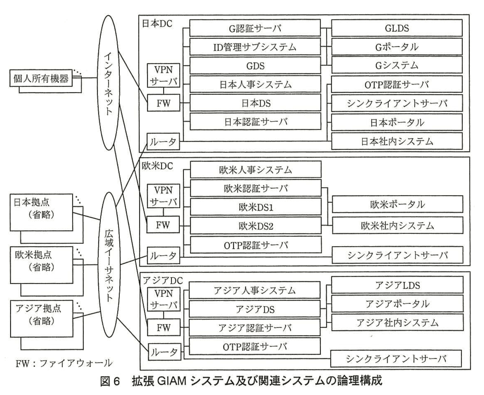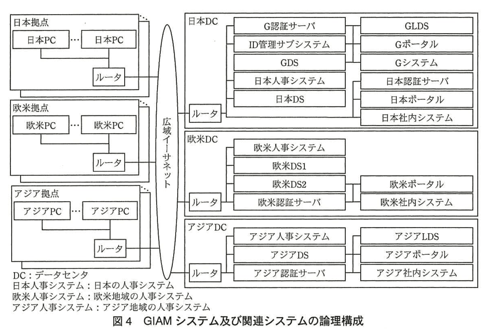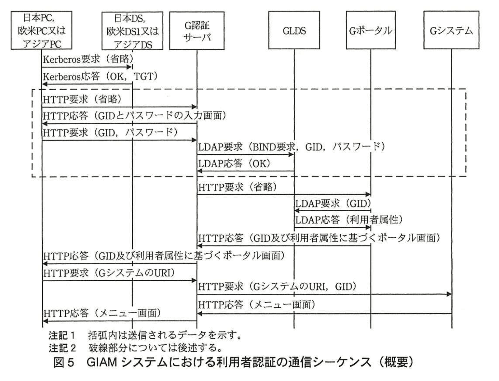 Yさんが設計した、GIAMシステム及び関連システムの論理構成を図4に、GIAMシステムにおける利用者認証の通信シーケンスを図5に、それぞれ示す。