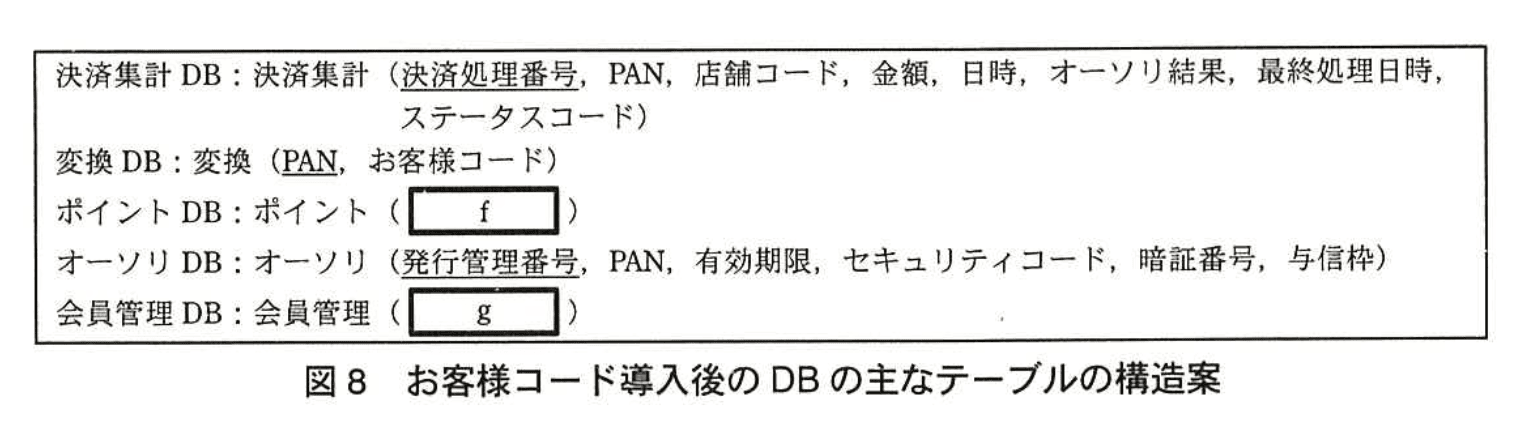 - 「図7では PAN が残っているから会員管理テーブルにも PAN を残す」と早合点する。図8導入後は変換DBで紐付けるため PAN は不要です。