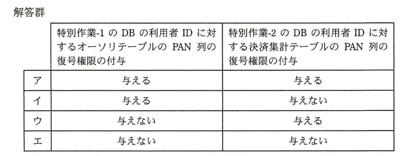 • 特別作業‐2 のDB利用者ID … PAN列を復号「与えない」