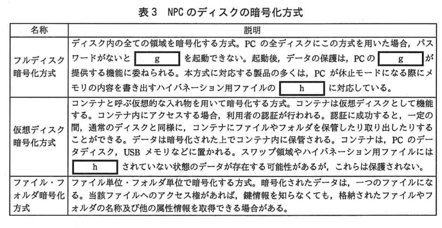 Uさんが検討した、NPCのディスクの暗号化方式を表3に示す。