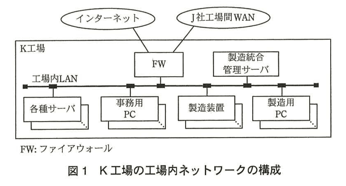 現在のK工場の工場内ネットワークの構成を図1に、機器の概要を表1に示す。