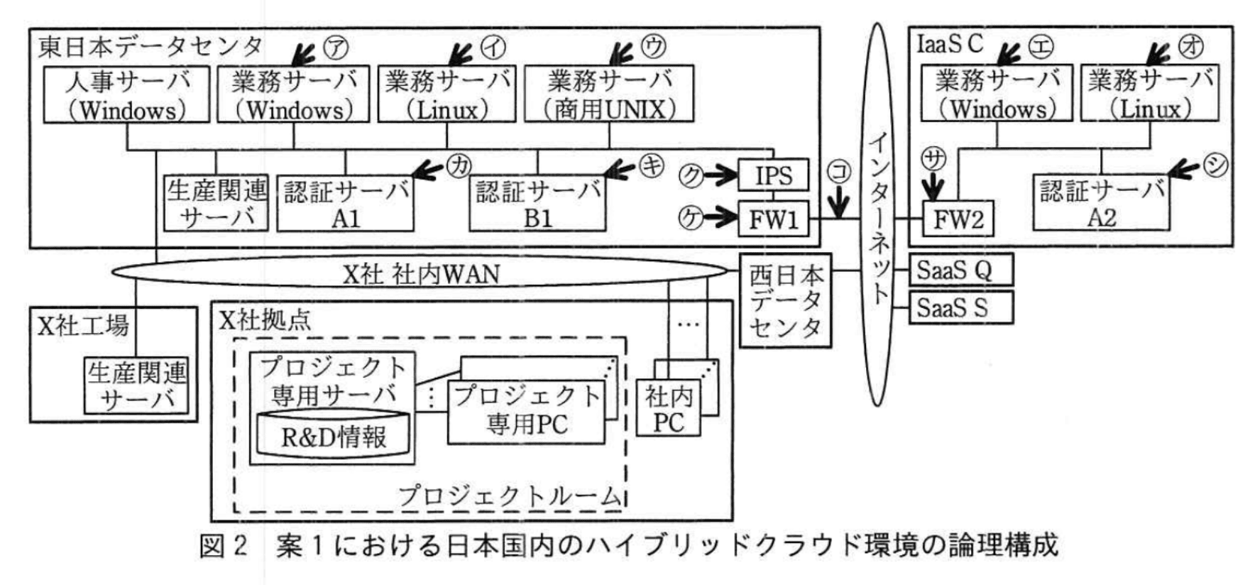 ・IaaS Cに配置するWindowsの業務サーバに従業員がアクセスする際に利用者認証を行う認証サーバとして、認証サーバA1と同じ製品を用いた認証サーバA2をIaaS Cの環境に新たに配置する。
