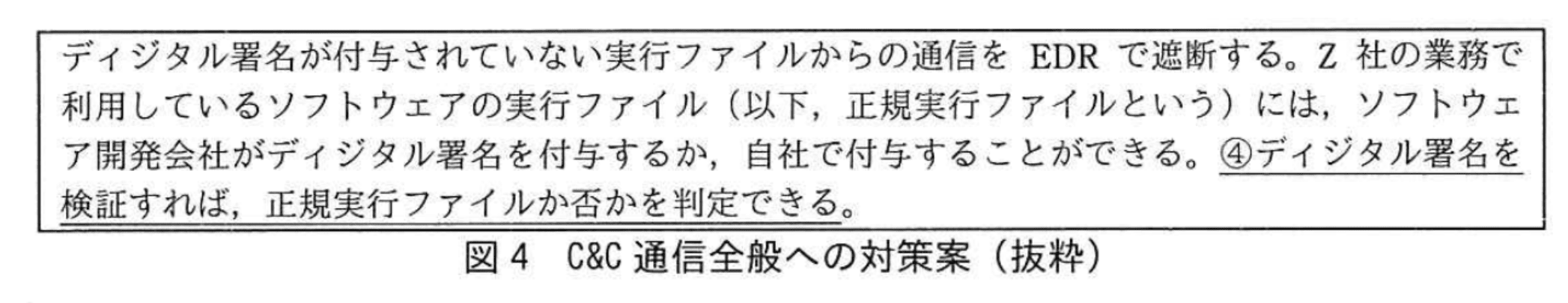 - 同じ文中に「Z社が導入しているEDRでは、DNSプロトコルによる通信を記録しない設定」と明記されています。