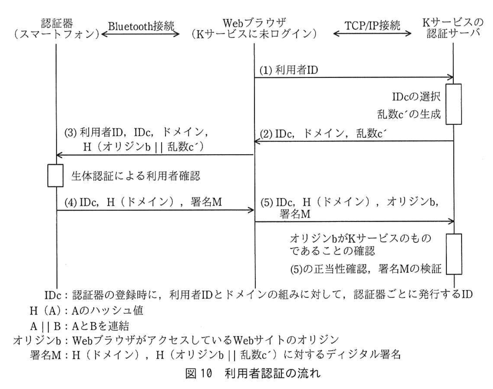 認証器としてスマートフォンを利用した場合の利用者認証の流れは図10のとおりであった。
