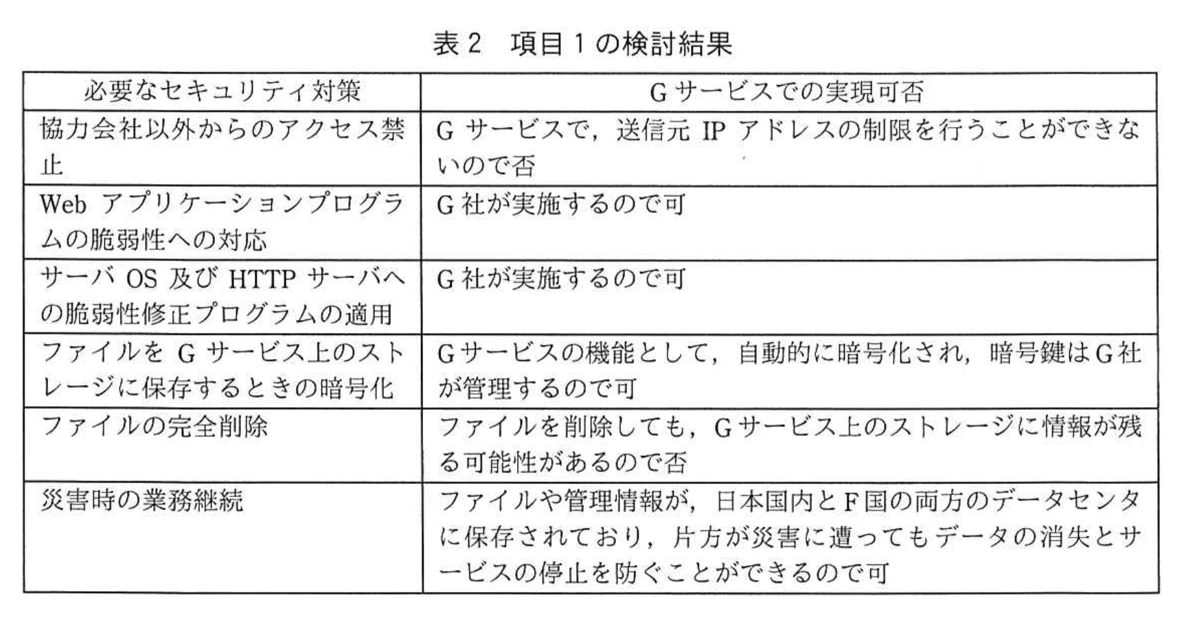 項目1:必要なセキュリティ対策のGサービスでの実現可否