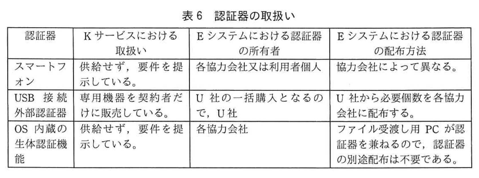 - 表6の「認証器の所有者」欄を読み飛ばし、管理範囲の違いを把握できない。