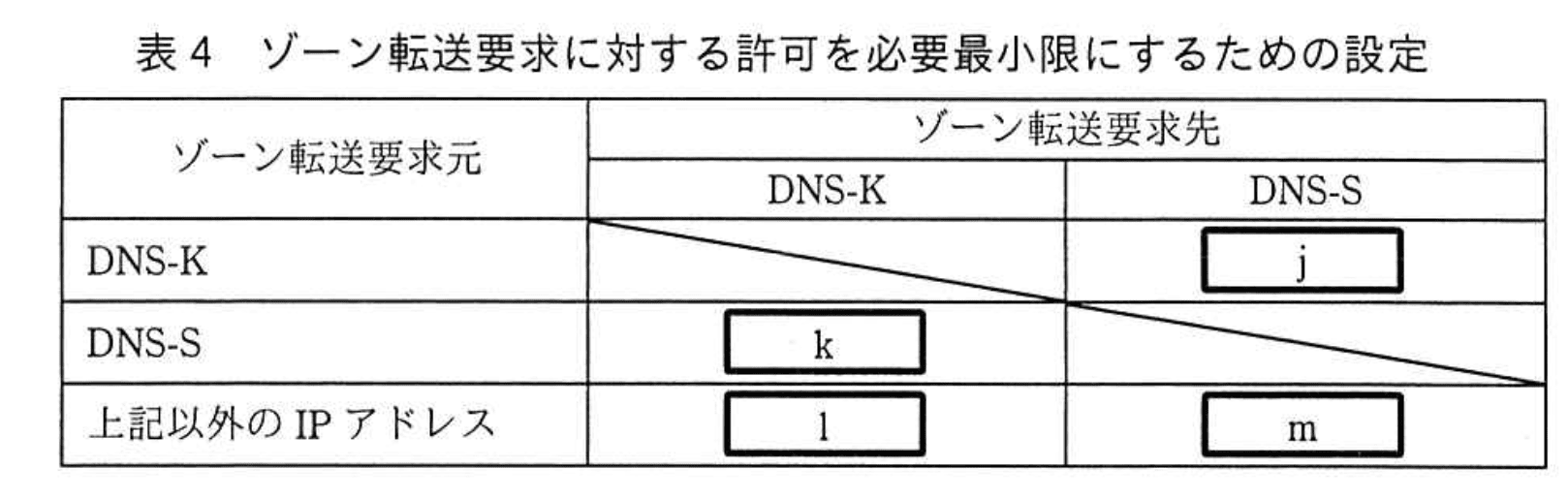 ⇒ j は「拒否」。(2) ゾーン転送要求元がDNS-S → DNS-K(k)