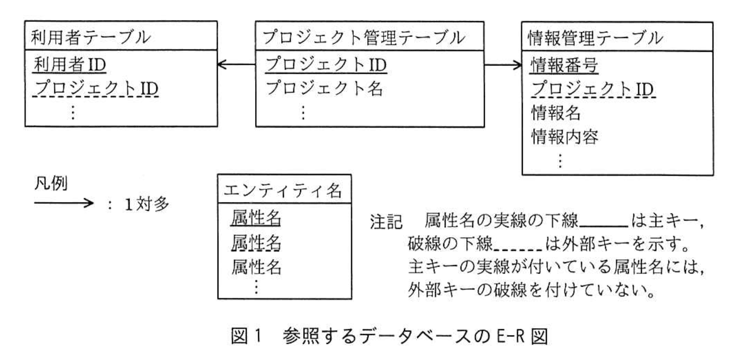 情報選択機能及び情報表示機能が参照するデータベースのE-R図を図1に、修正後の情報選択機能のソースコードを図2に示す。