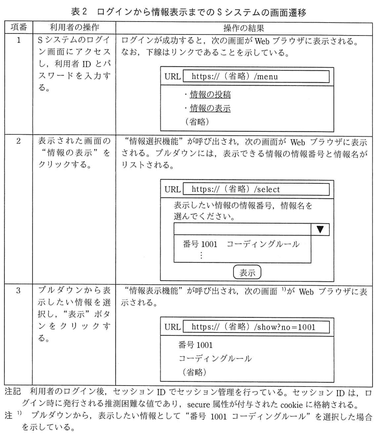 ログインから情報表示までのSシステムの画面遷移を表2に示す。