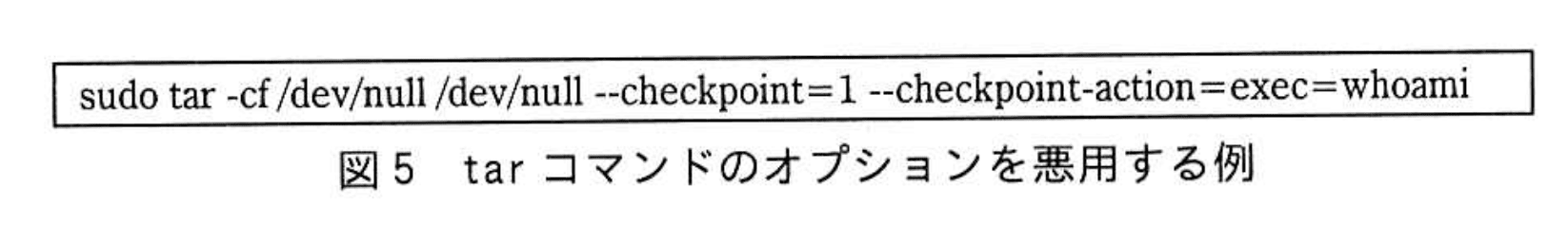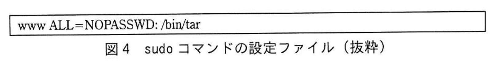 - 図4の内容:「www ALL=NOPASSWD:/bin/tar」