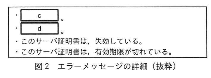 - 図2 には既に「このサーバ証明書は、失効している。」「このサーバ証明書は、有効期限が切れている。」の2行が具体例として掲載されています。