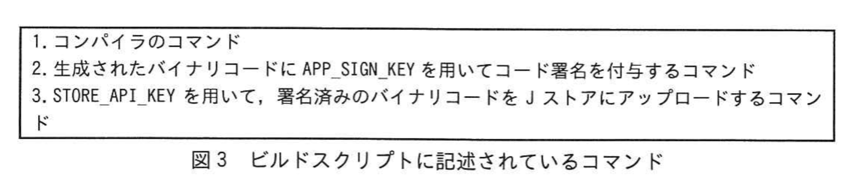 → 攻撃者は①正規と同じ署名鍵で“有効なコード署名”を付与し、②APIキーで“Jストア”のREST APIを呼び出してアップロードできる。