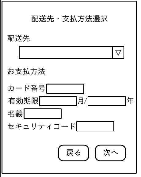 - 上部中央: 画面タイトル「配送先・支払方法選択」
