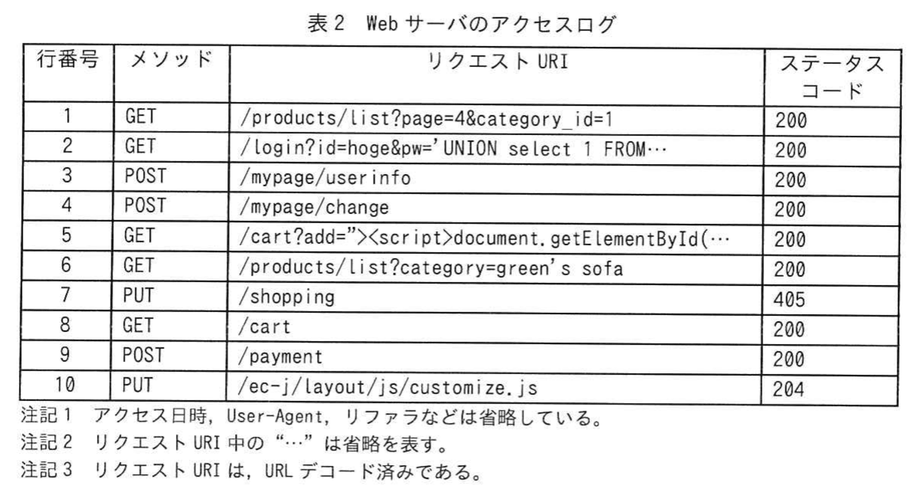 関連キーワード: クロスサイトスクリプティング、SQLインジェクション、HTTPメソッド、アクセスログ、格納型XSS