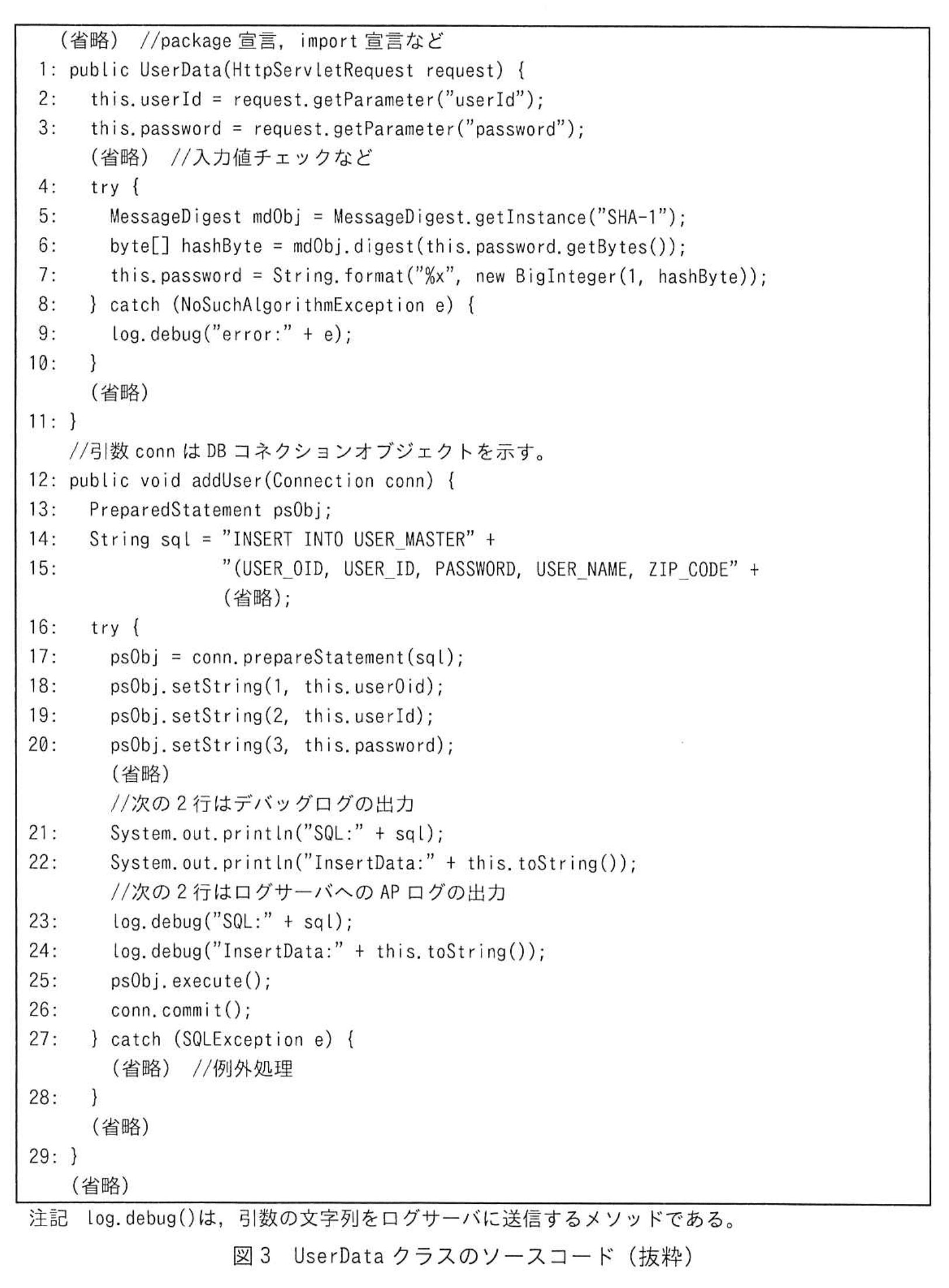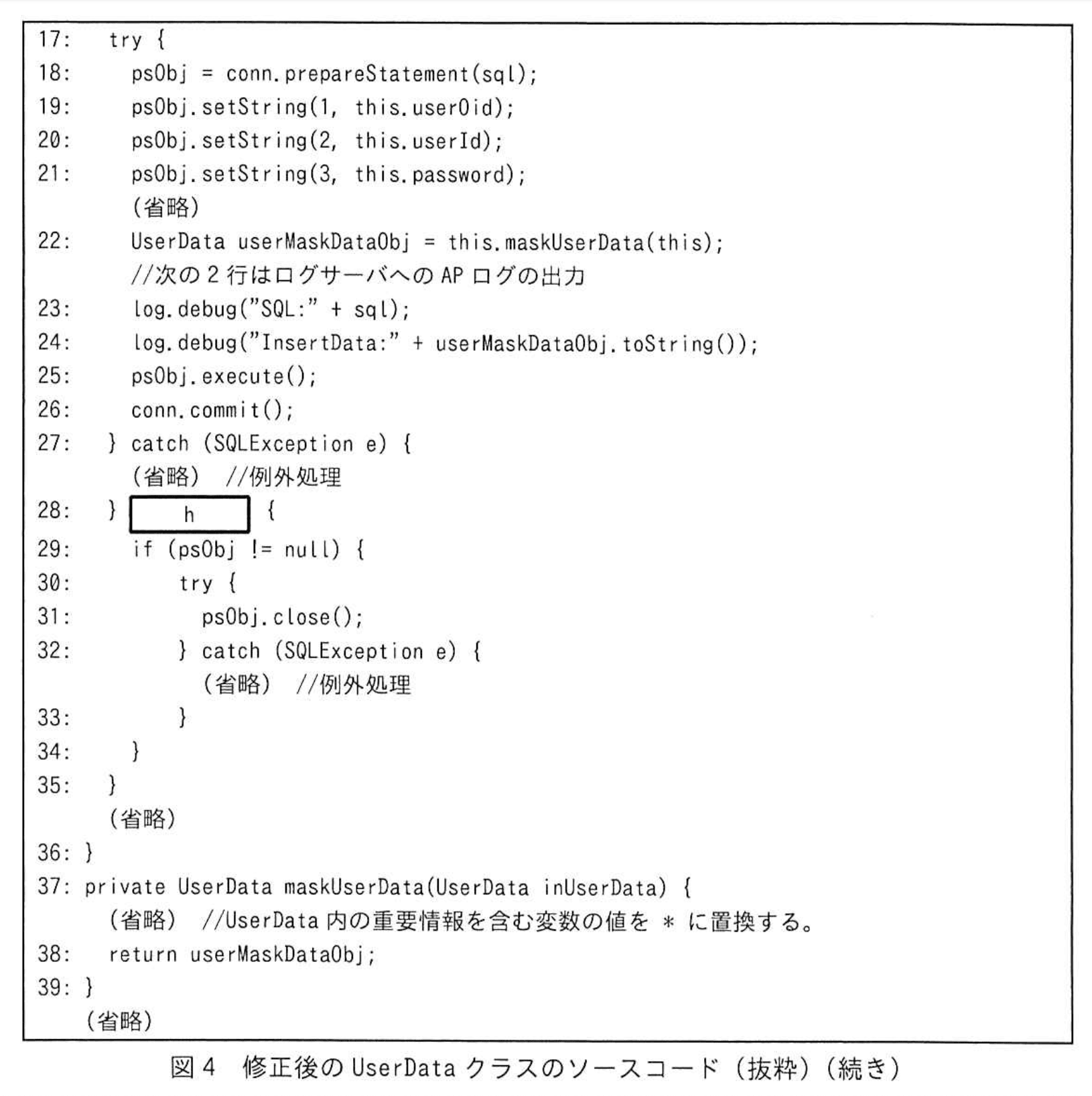 E氏の指摘を受け、システム開発者は、UserDataクラスのソースコードを修正した。