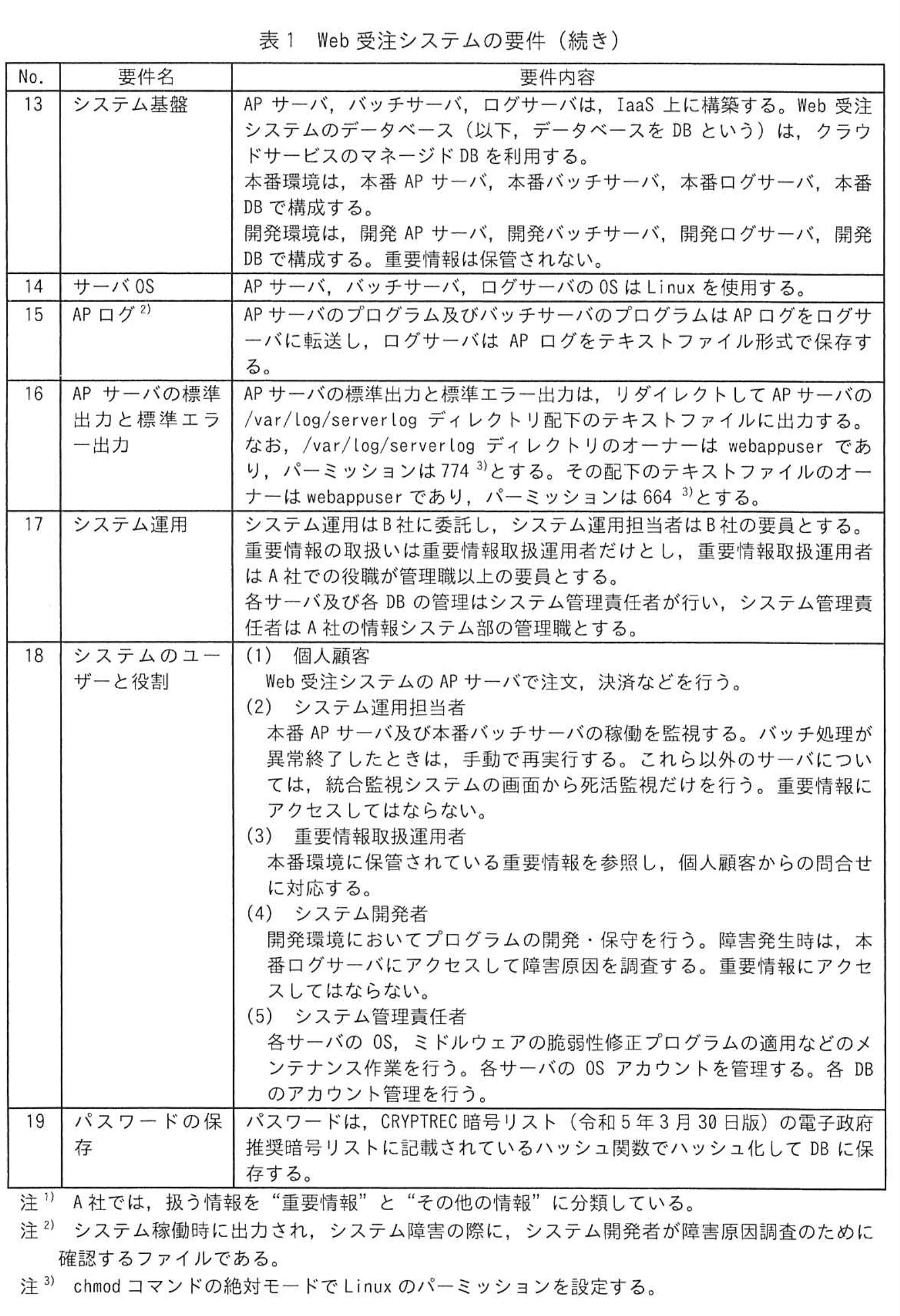 設問1:〔データ連携機能のセキュリティレビュー〕について答えよ。